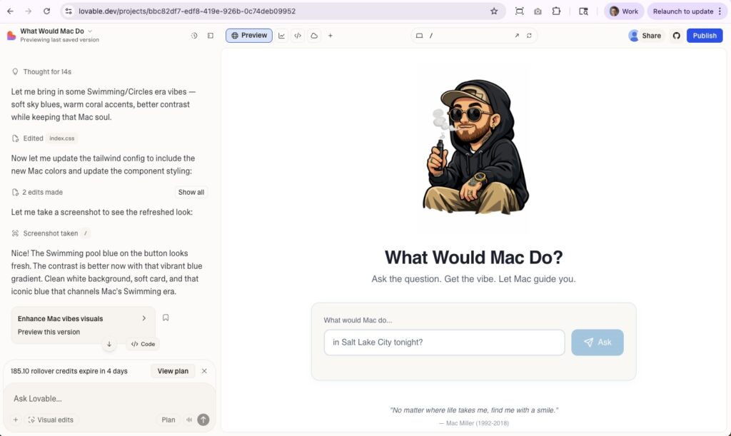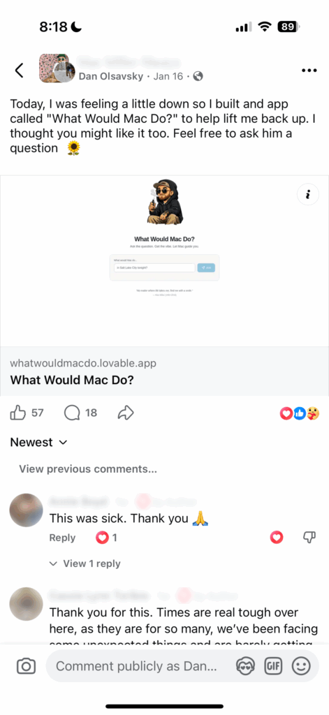 “I built this app for myself, but it turns out it was never just for me. It was for anyone who needed a familiar voice to say something kind at the right moment. That is the beauty of narrow intent. When you build something small with care, it has room to hold something big.” 🥺
